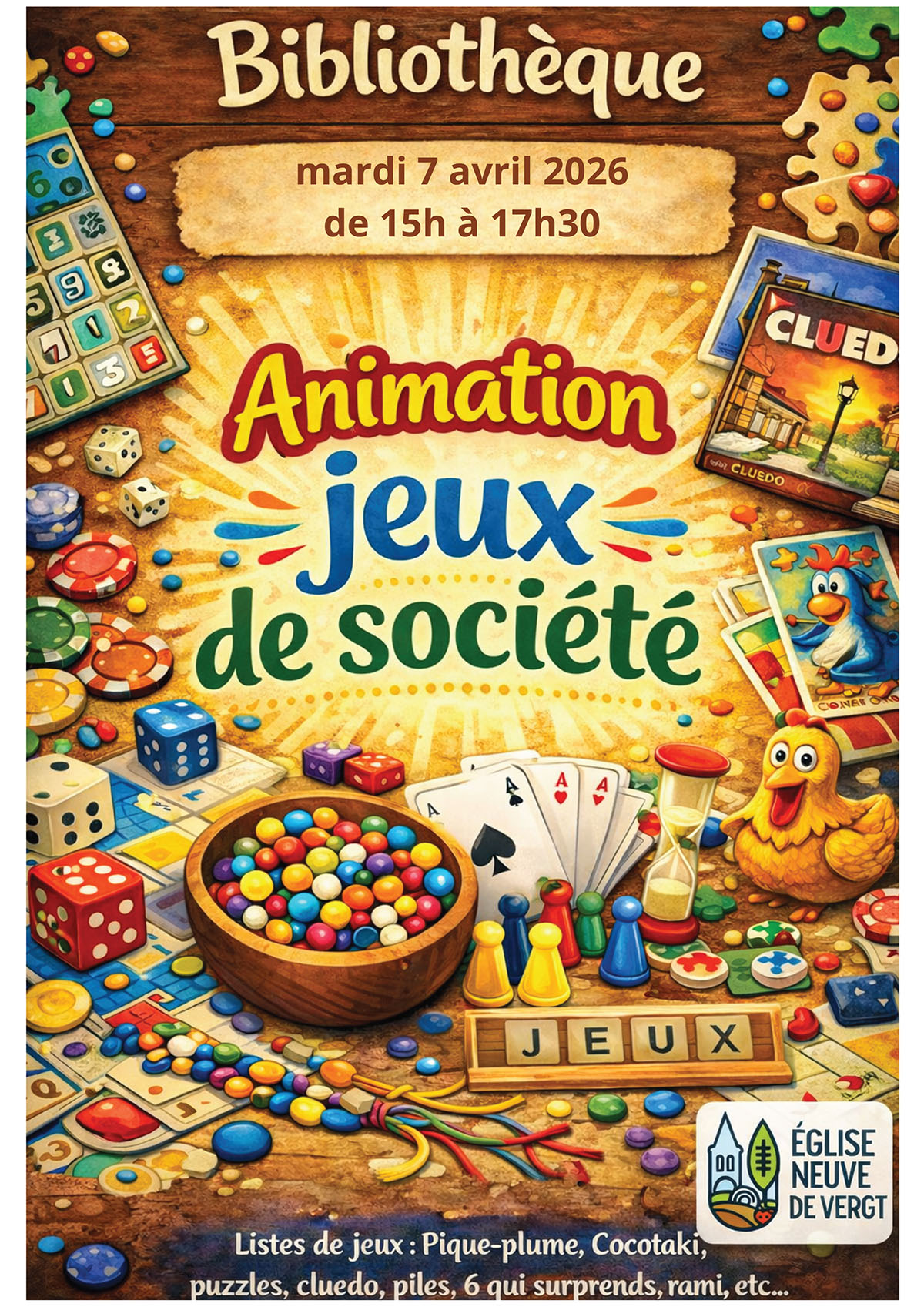 La bibliothèque d’Eglise Neuve de Vergt vous propose une Animation jeux de société