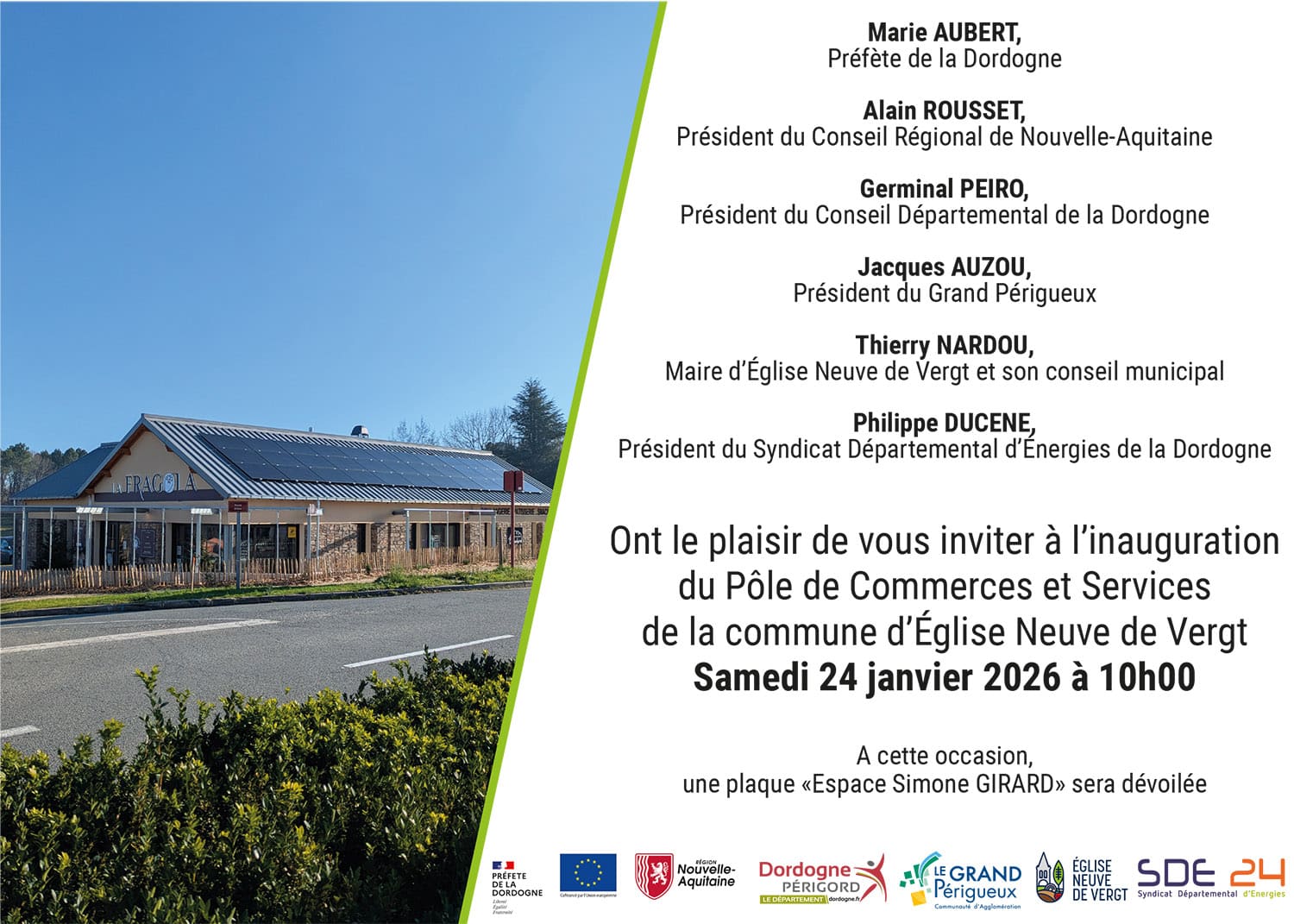 Marie AUBERT, Préfète de la Dordogne Alain ROUSSET, Président du Conseil Régional de Nouvelle-Aquitaine Germinal PEIRO, Président du Conseil Départemental de la Dordogne Jacques AUZOU, Président du Grand Périgueux Thierry NARDOU, Maire d’Église Neuve de Vergt et son conseil municipal Philippe DUCENE, Président du Syndicat Départemental d’Énergies de la Dordogne Ont le plaisir de vous […]